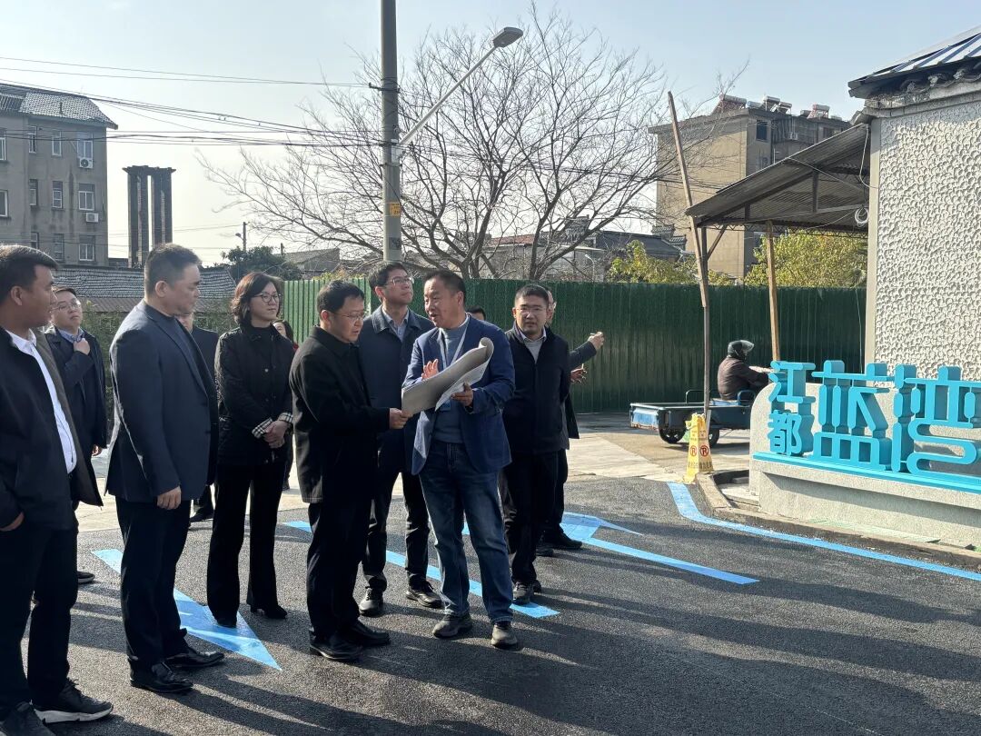 12月10日,扬州市副市长汤卫华,副秘书长裴东伟等领导一行莅临扬州江都蓝湾文旅街区参观考察,江苏蓝园集团江都片区总经理郭健等领导陪同参观。